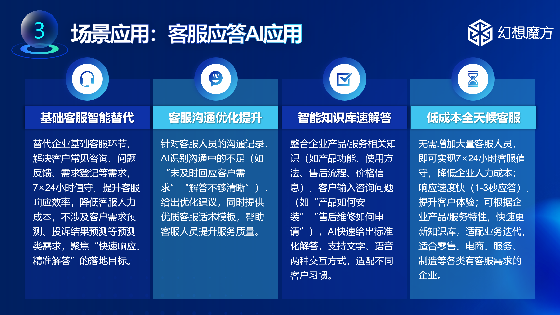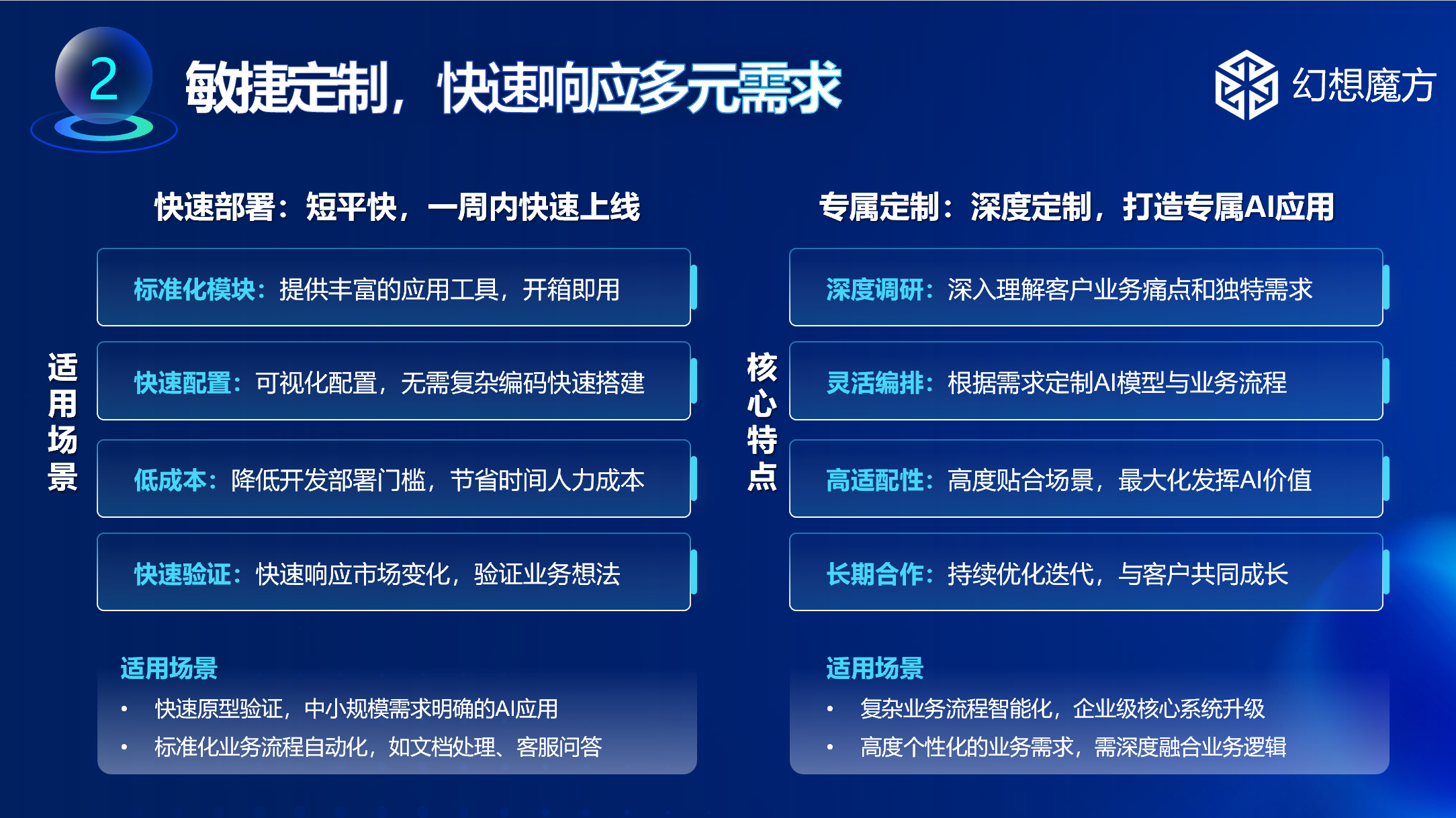 幻想魔方是专注于人工智能技术的创新型科技企业, 我们致力于将前沿AI技术转化为可落地的商业解决方案, 助力企业实现智能化升级与数字化转型。